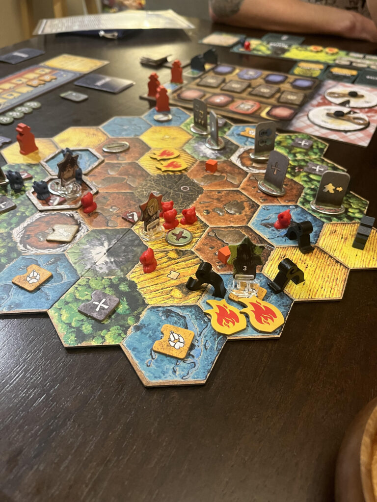 This is also where the Fair Folk can really come in handy, I think. If players use their boons as a balancing tool against the leading player, they can make sure no one gets too far ahead. But even if something goes horribly wrong and you’ve completely failed on any tactical planning, it’s a relatively quick game that respects your time. Between this and the many faction options, this game has plenty of replayability.
